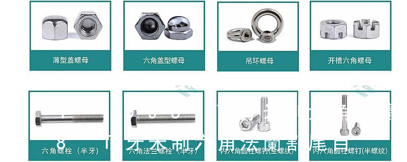 螺栓螺釘系列 外六角螺栓、內(nèi)六角螺栓、雙頭螺栓、單頭螺栓、牙棒、牙條、U形螺栓、T形螺栓、六角法蘭螺栓、六角帶介螺栓、半圓頭方頸螺栓、沉頭方頸螺栓、馬車(chē)螺栓、圓頭帶榫螺栓、圓頭螺栓、扭剪型螺栓、方頭螺栓、活結(jié)