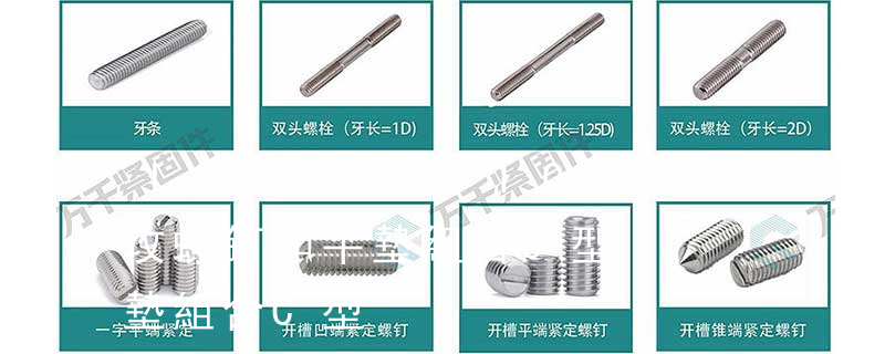 精密類:盤頭自攻釘、沉頭自攻釘、大扁頭自攻釘、盤頭機螺絲、沉頭機螺絲、大扁頭機螺絲、鉆尾螺釘、六角木螺釘、三角牙自攻釘、各種組合螺絲等 其它類:焊釘、拉鉚釘、牙棒、化學錨栓、鋼絲螺套、進口喉箍、開口銷、自鎖螺