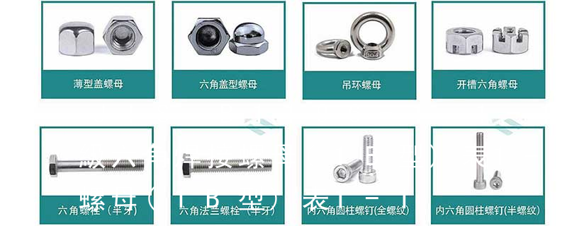 有20個牙)。六角螺母按照公稱厚度分為I型、II型和薄型三種。8級以上的螺母分為1型與II型兩種型式。I型的六角螺母應用最廣,1型螺母又分A,B,C三級,其中A級和B級螺母適用于表面粗糙度較小,對精度要求高的機器、設備 1型六角開槽螺母-A和B級GB 6178-86 1型六角開槽螺母-C級GB 6179-86 2型六角開槽螺母-A和B級GB 6180-86 六角開槽薄螺母-A和B級GB 6181-86 2型非金屬嵌件六角鎖緊螺母GB /T 6182-2000 非金屬嵌件六角法蘭面鎖緊