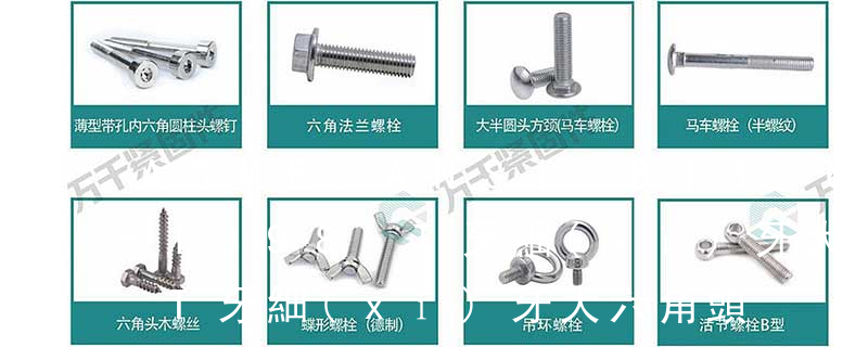 主要分類包括普通螺絲、機(jī)螺絲、自攻螺絲和膨脹螺絲三種。 有頭螺釘Cap screw 過去限于全牙的扣件。 六角頭螺釘Hex cap screw與大六角螺栓Hex bolt 顧名思義為頭部為六角型的外螺紋扣件,設(shè)計(jì)為使用扳手轉(zhuǎn)動(dòng)。依照ASME B18.2.1標(biāo)準(zhǔn),六